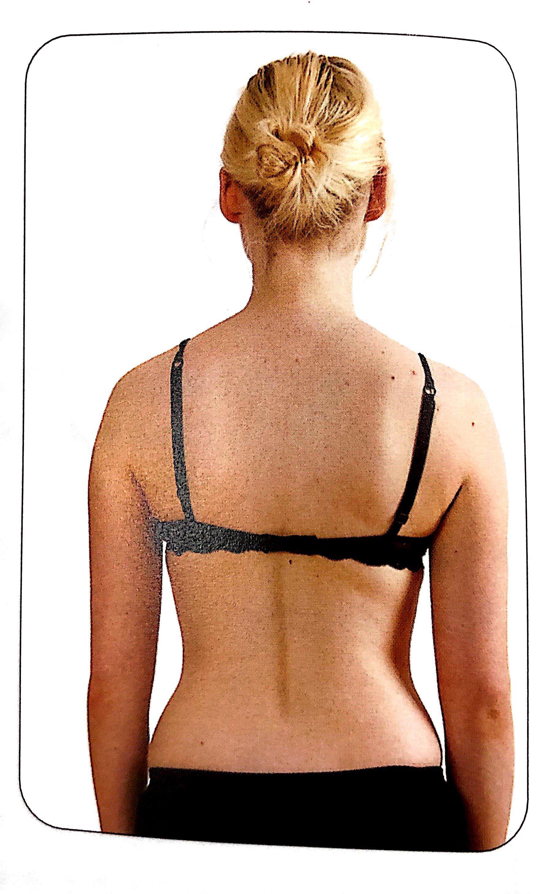 观察:接下来请观察受试者的肩胛骨,内侧缘与脊椎的关系。来判断肩胛骨是否存在后缩或者前伸,除了经常运动的受试者以外,大多数人的肩胛骨会稍稍前伸,部分原因是他们坐时会倾向于驼背的姿势。