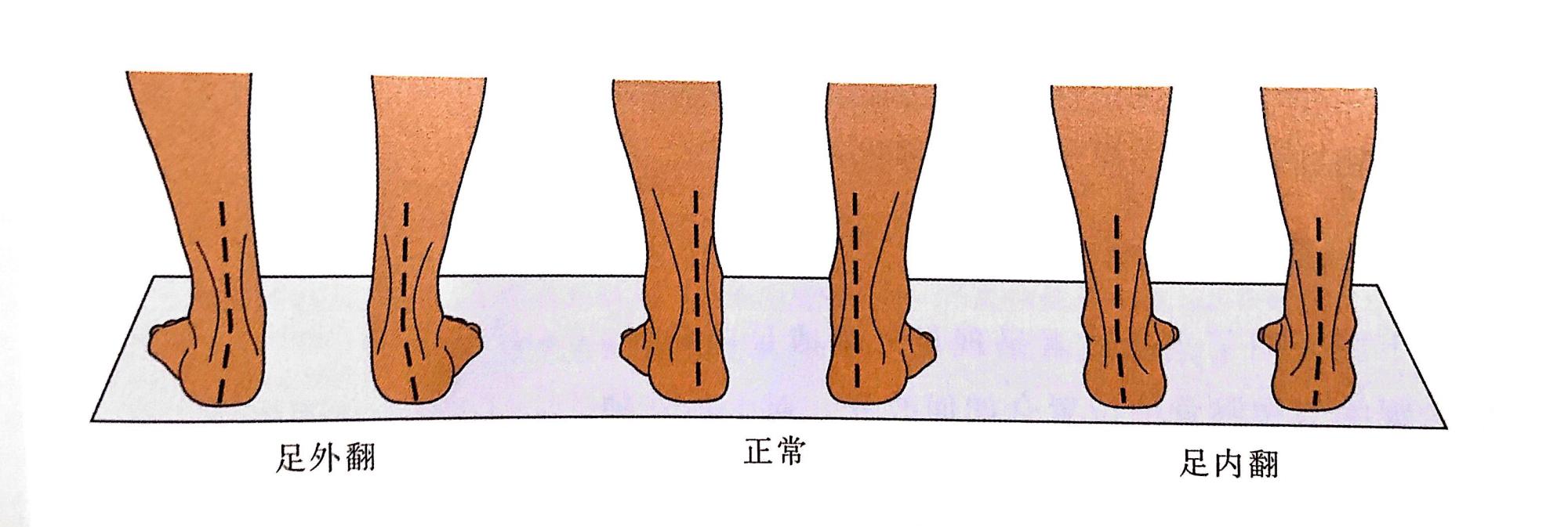分析:对于跟腱的观察可以帮助提供关于过度足外翻或者足内翻的信息。严重足外翻或足部过度旋前的一侧腿,可能存在腓骨肌缩短的问题。