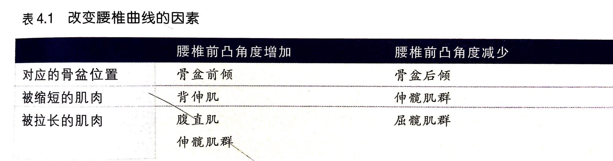 表4.1总结了这些信息。下面的照片展示了一个训在腰椎前凸曲线增加的好例子。