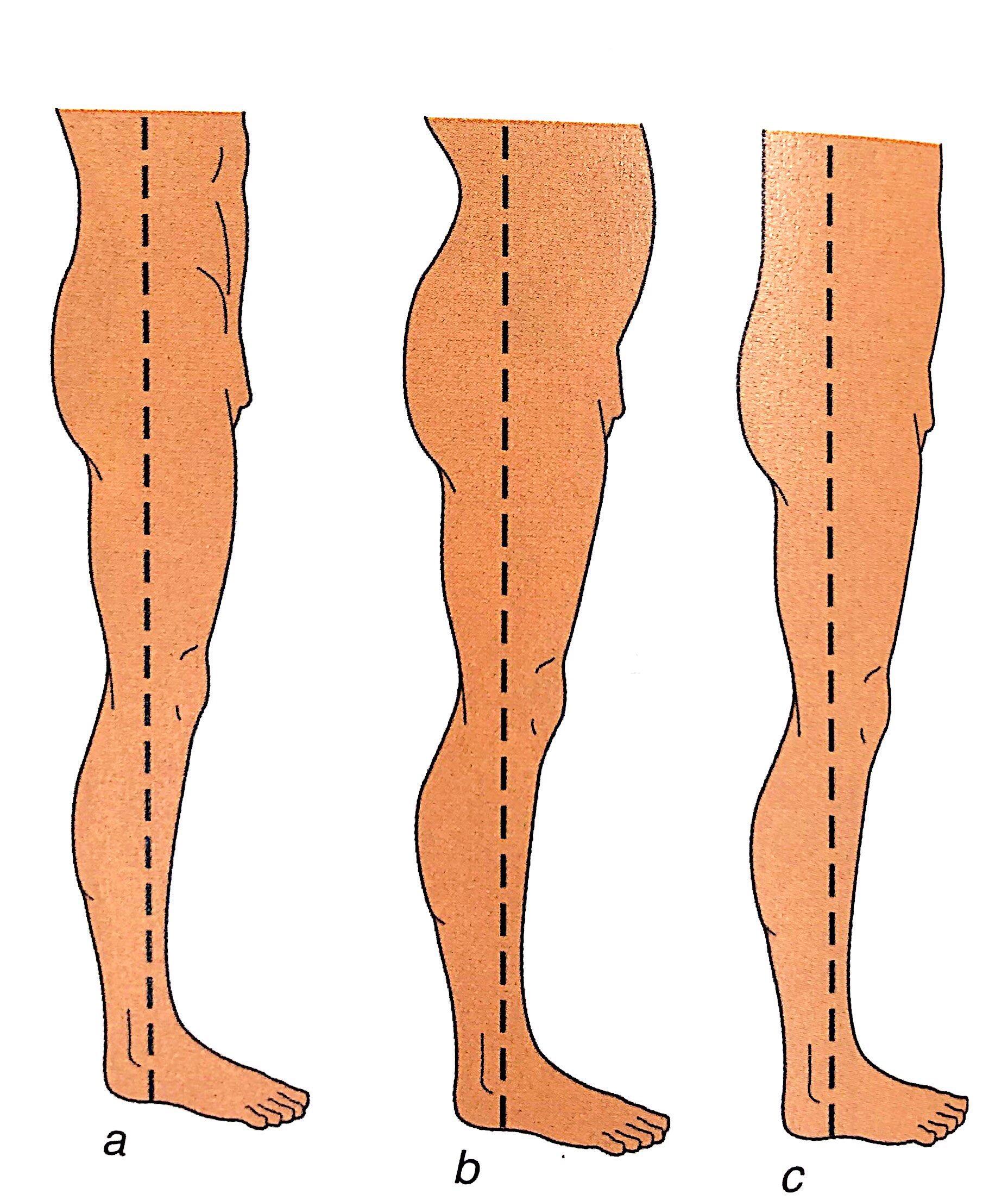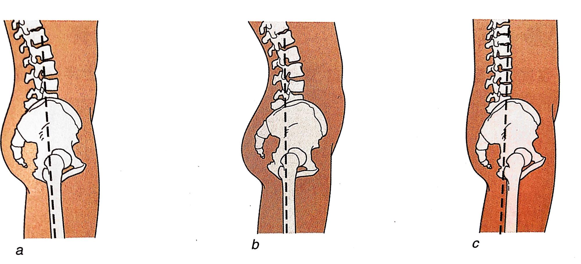 腰椎和骨盆是互相关联的,所以腰椎曲度增减会影响到骨盆的位置。但是对于刚接触体态评估的人而言,要定位骨盆的位置是很困难的,因此建议先从观察腰椎区域开始。受试者腰椎生理曲度是否正常?是否存在任何前凸幅度的增减情况?上图可能有助于你理解受试者的腰椎前凸情况与身体中垂线的位置关系:a.腰椎生理曲度正常,b.腰椎前凸增加,c.腰椎前凸降低。