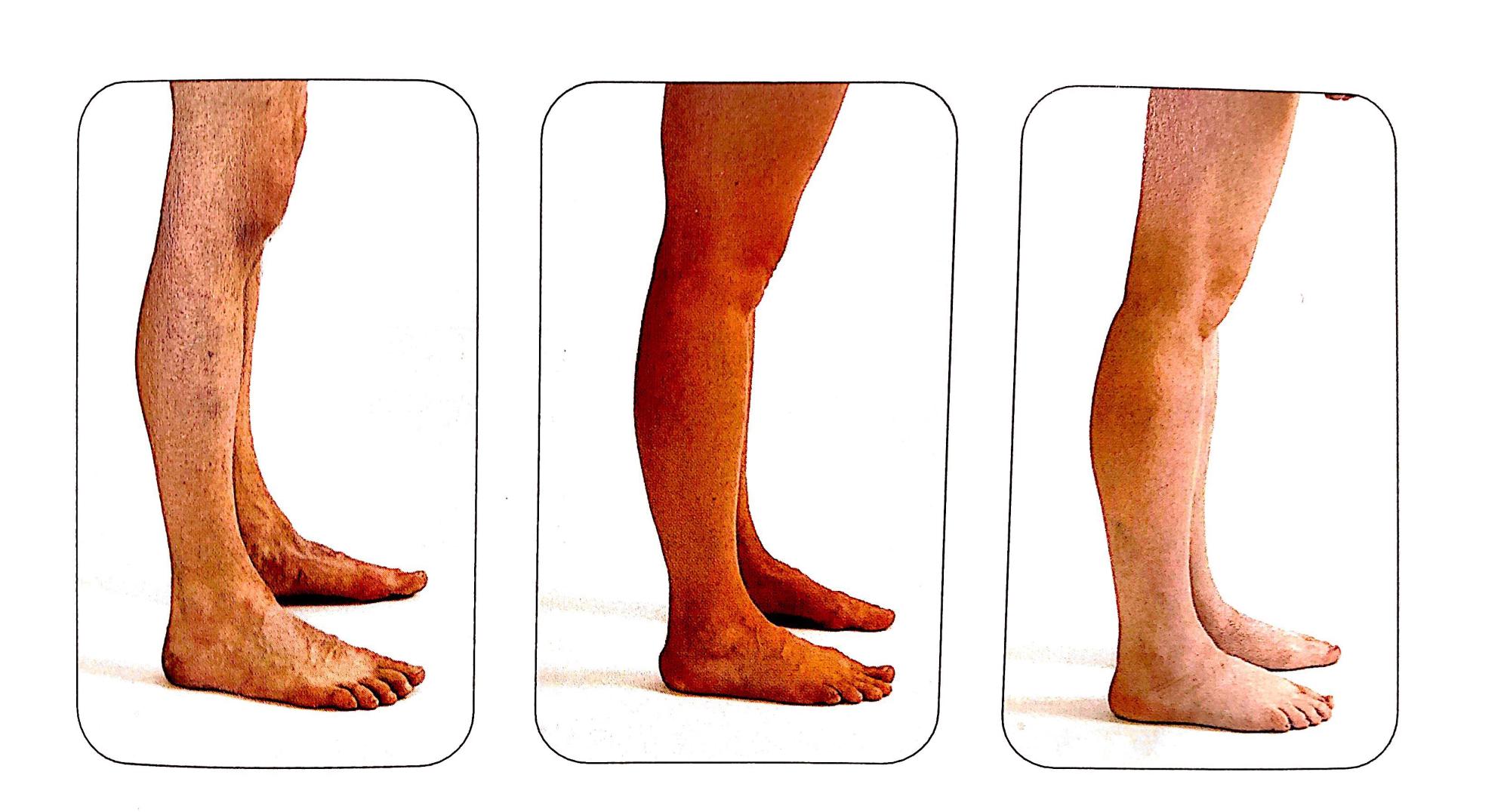 下面的三张照片很好的展示了踝关节背曲降低的例子。