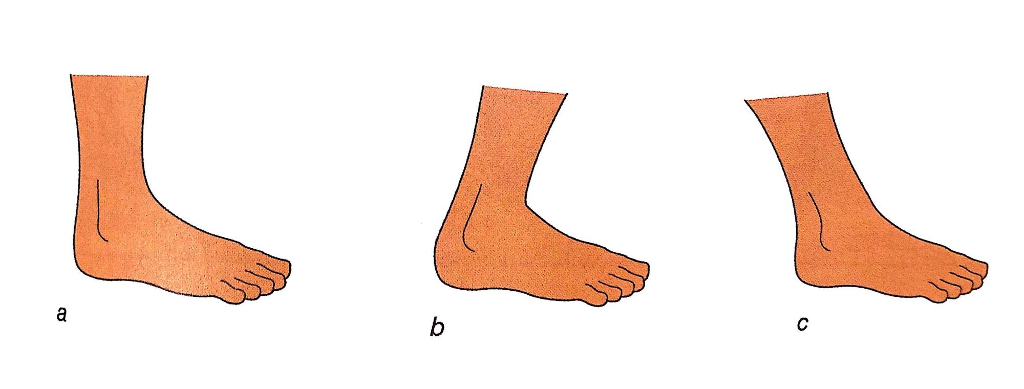 观察:脚踝处于中立位(a),存在背曲幅度增加(b)背曲幅度减小(c)